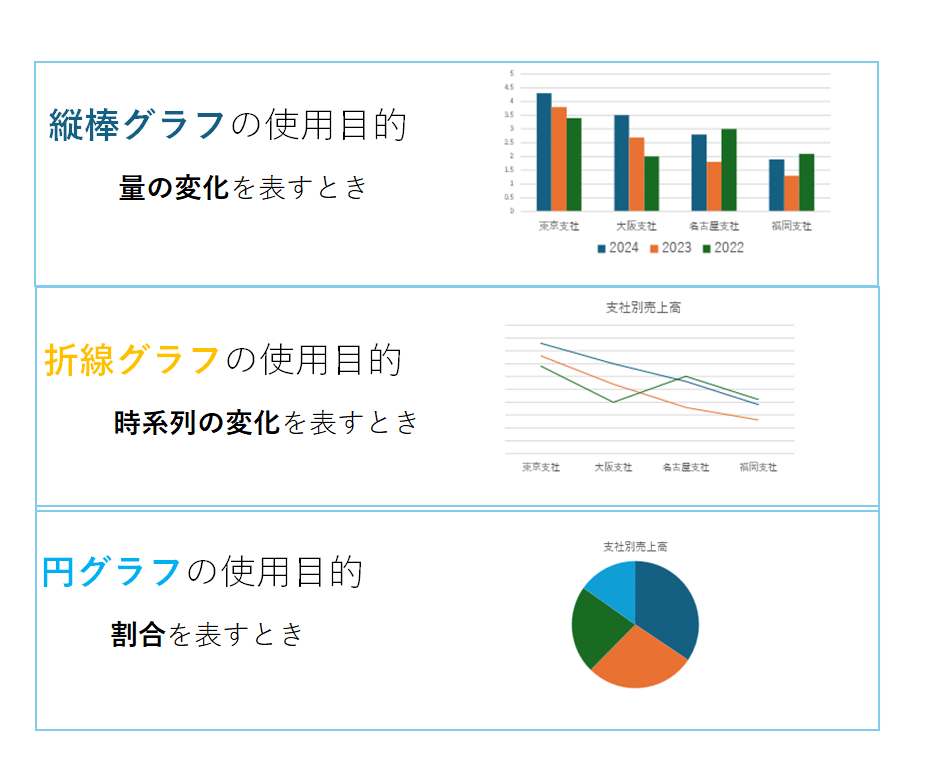 グラフの種類には、棒グラフ、折れ線グラフ、円グラフなど様々なグラフの種類が存在します。