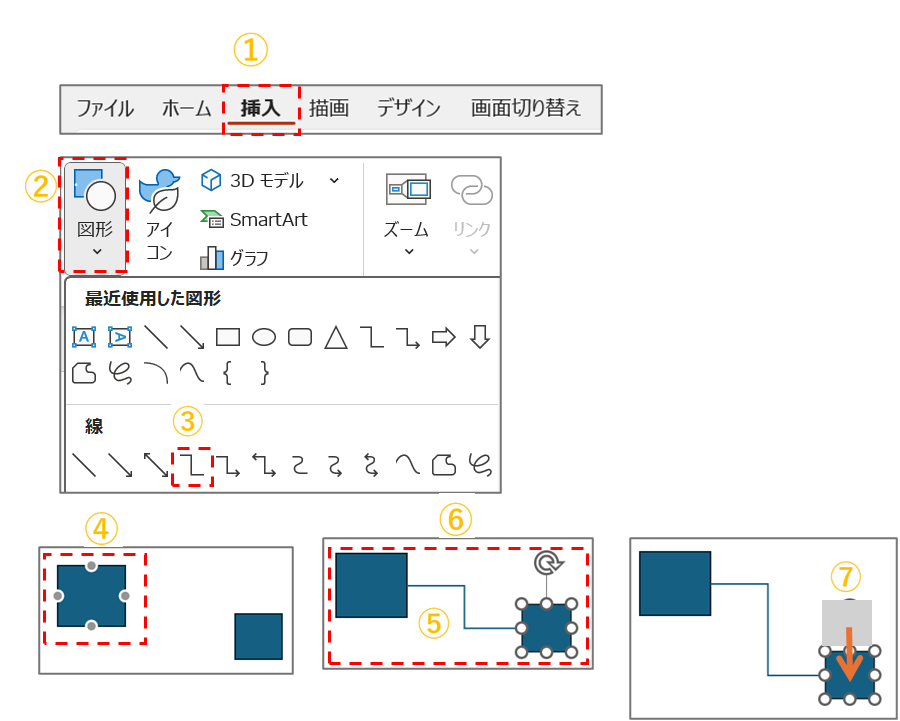 ⑦図形を動かしても連結が維持されます。