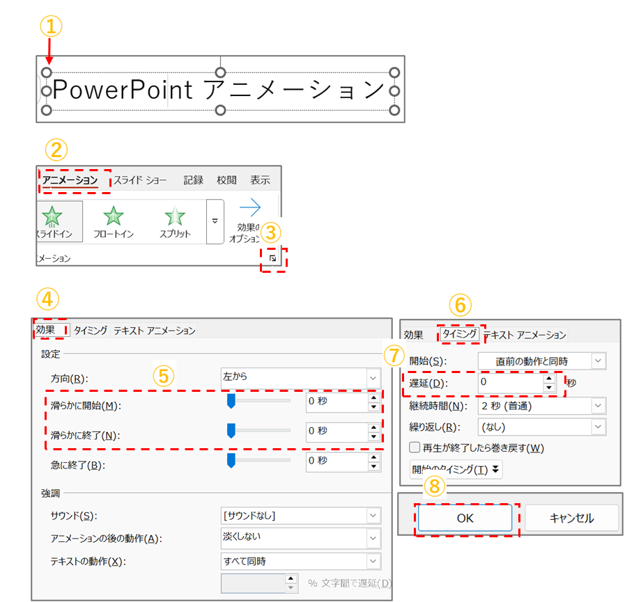 文字、画像、図形、表などにアニメーションを適用する方法です