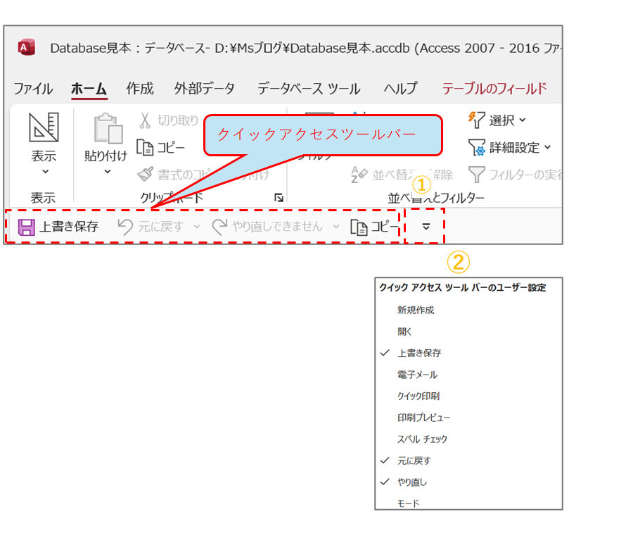 よく使うボタンを自分用にアレンジしたい場合は①の「▼」をクリックします