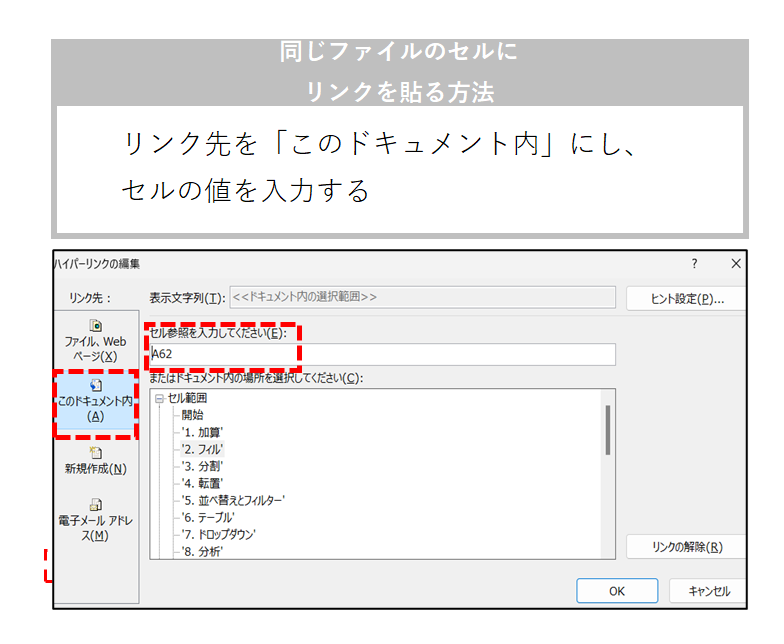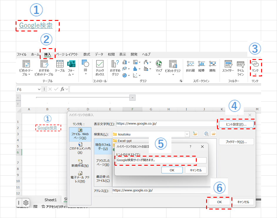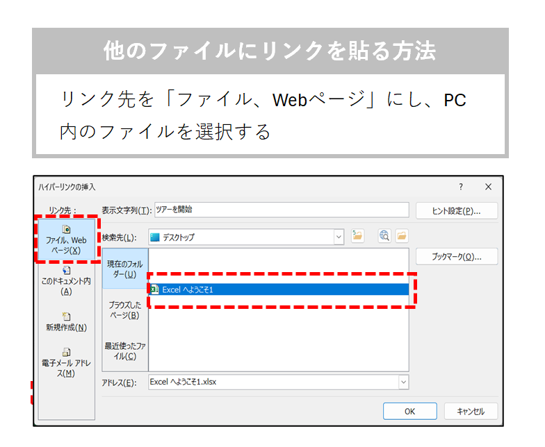 ハイパーリンクのヒントとは、クリックしたときに何が開くのかが具体的にわかるテキストにすると、ユーザーにとって親切です。