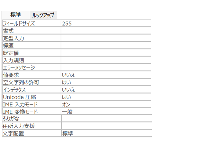 テキストの場合は次のフィールドプロパティの設定ができます。