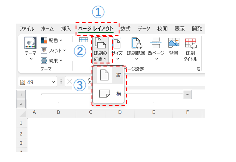 ②「印刷の向き」をクリックする