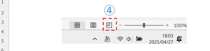 画面に下段にのステータスバーに「印刷プレビューボタン」の設置があります