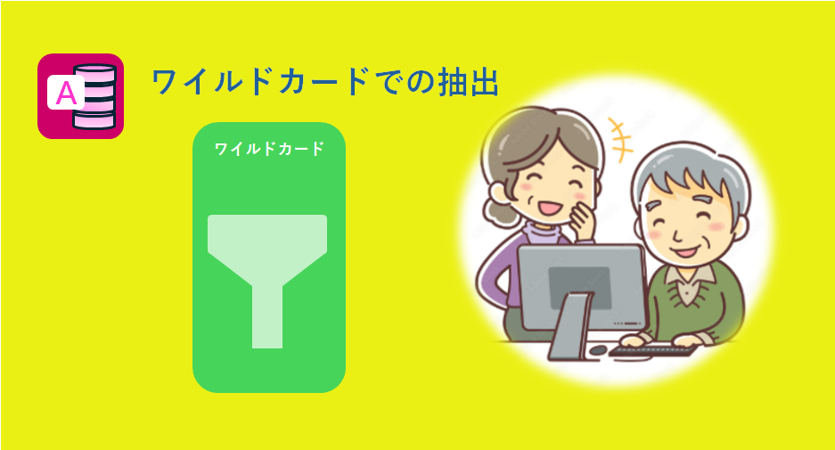 Accessにおける「ワイルドカード」とは、クエリやVBAなどでデータを抽出する際に、あいまいな検索(部分一致検索)を行うための特殊な記号のことです。