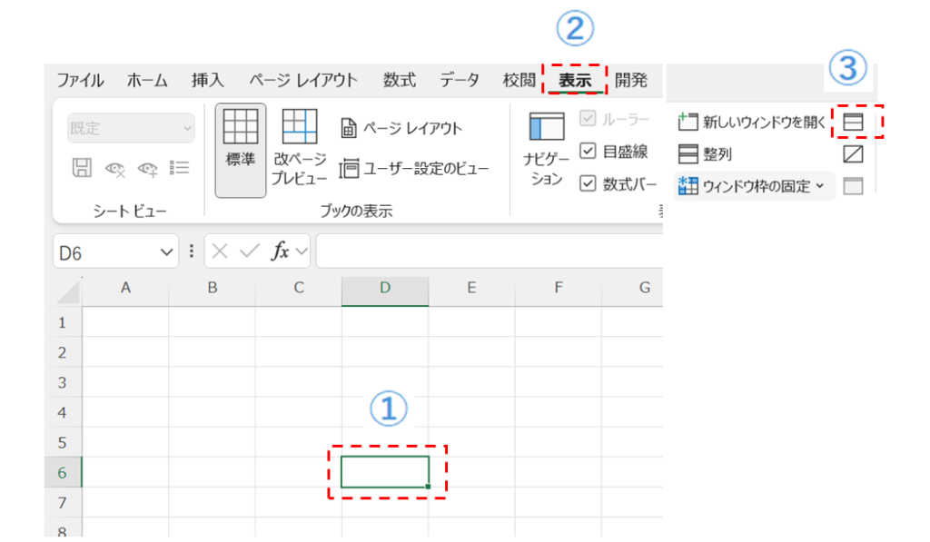 これにより、大きなワークシートの異なる部分を同時に画面に表示し、スクロール操作などを個別に行うことができます。