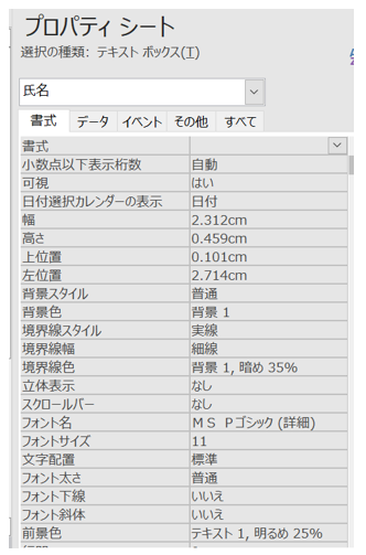 選択したコントロールのプロパティシートが表示される