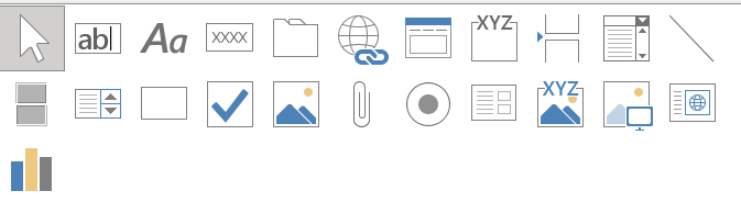 コントロールとは、フォームやレポート上に配置して、フォームやレポートのもとのテーブル、クエリのデータを表示したり、タイトルや日付などの文字を表示するときに使う部品です。