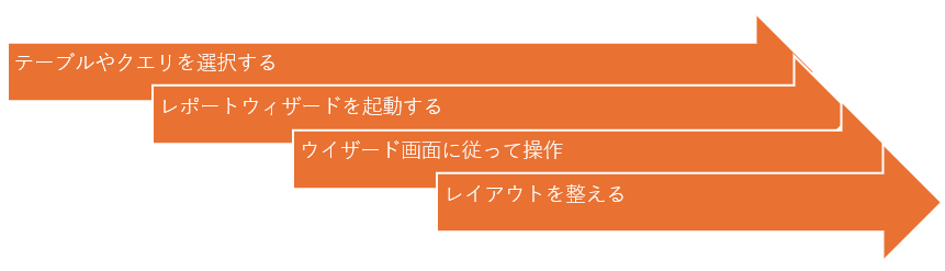 最も手軽なのは、ウイザード画面を使う「レポートウィザード」です。