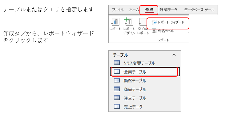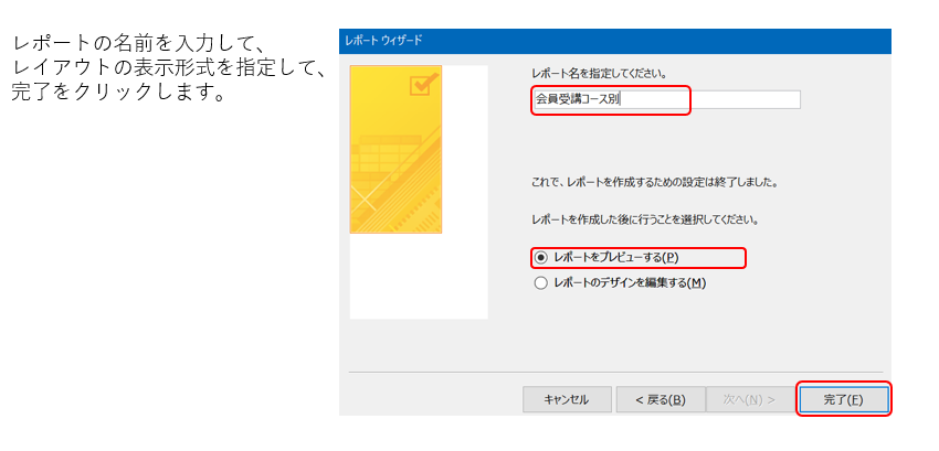 レポートウィザードの起動