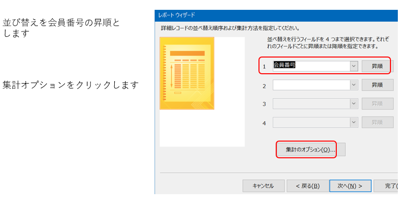 並び替えの指定・集計オプション