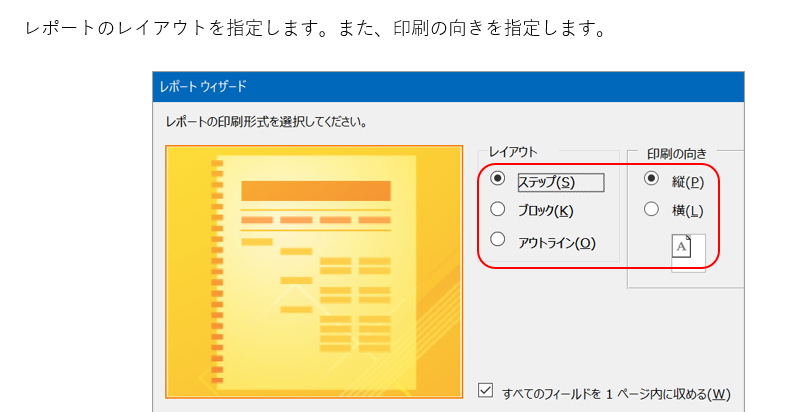 レポートの印刷形式の選択