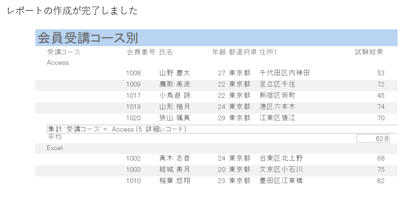 以上で「ACCESS レポートのグループ化」の解説を終了します。