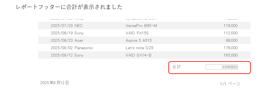 以上で「ACCESS レポートに合計を表示する」の解説を終了します。