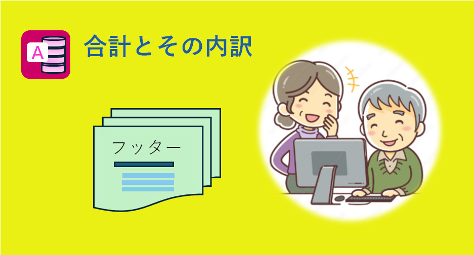 ページやレポートの最後に合計とその内訳を表示するには、「ページフッター」や「レポートフッター」セクションに計算結果を表示するコントロールを配置します。