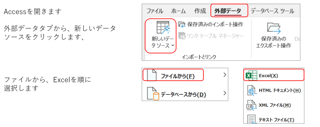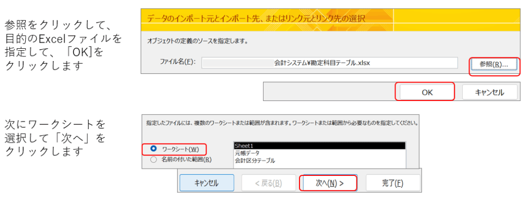 ExcelファイルのデータをAccessにインポートするにはウィザード画面を操作します。