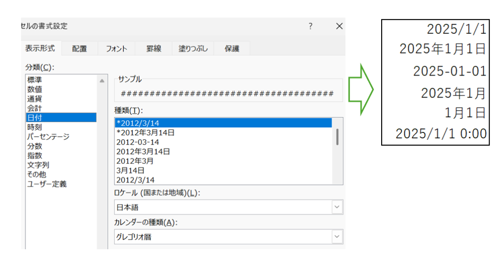 日付には、さまざまな日付の表示形式を設定することができます。