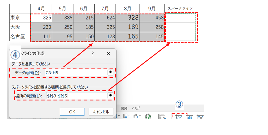Excelのスパークラインは、ワークシートの個々のセル内に表示できる小さなグラフのことです。大きなデータセットの傾向をセル内で視覚的に表現し、数値だけでは分かりにくいデータの推移やパターンを把握するのに役立ちます。