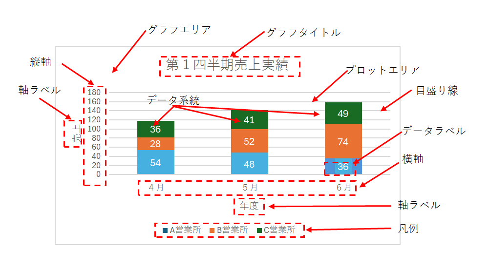 グラフの要素とはグラフを構成する部品(=要素)のことです