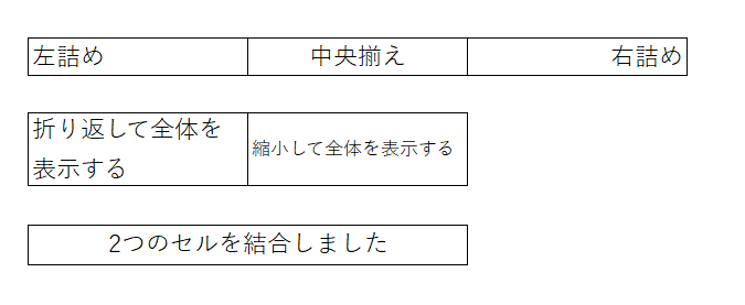 セル内の文字の位置は左揃え、中央揃え、右揃えが指定できる