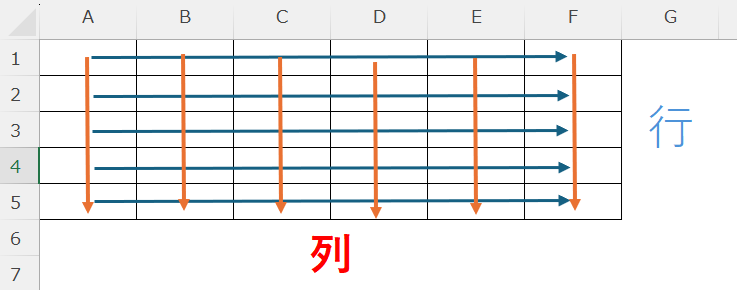 列 (Column)はワークシート上で縦方向に伸びるセルの集まりです。