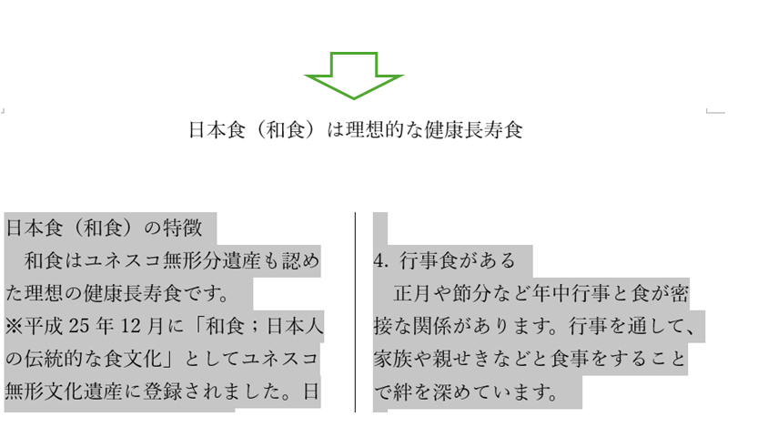 ①段の幅を変えたい範囲を選択します