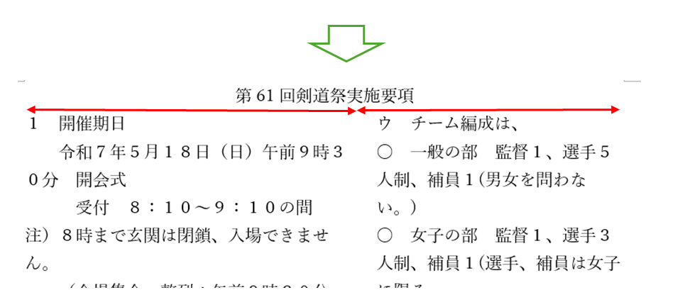 (段ごとに列の幅が変更されました)