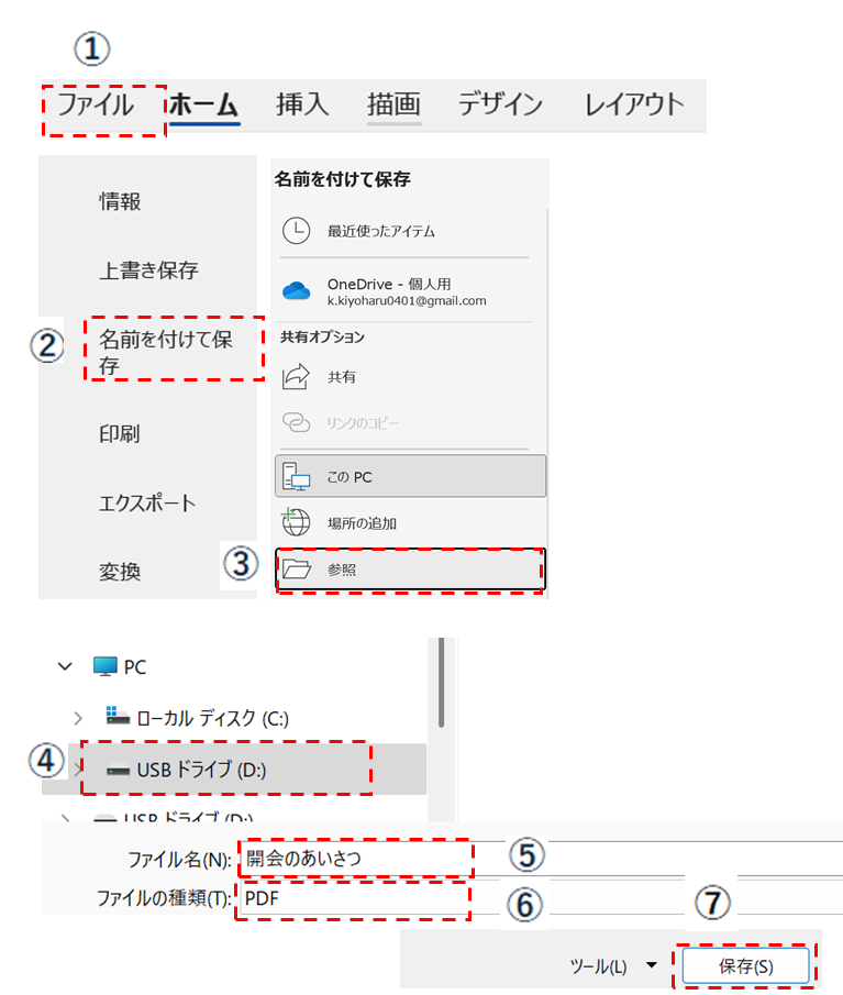 ⑤ 保存先を指定する