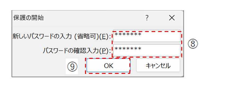 ⑧ 読み取りと書き込みのパスワードをそれぞれ設定する