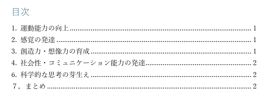 文書内に目次を作成することで文書の構成をわかりやすく明示することができます。
