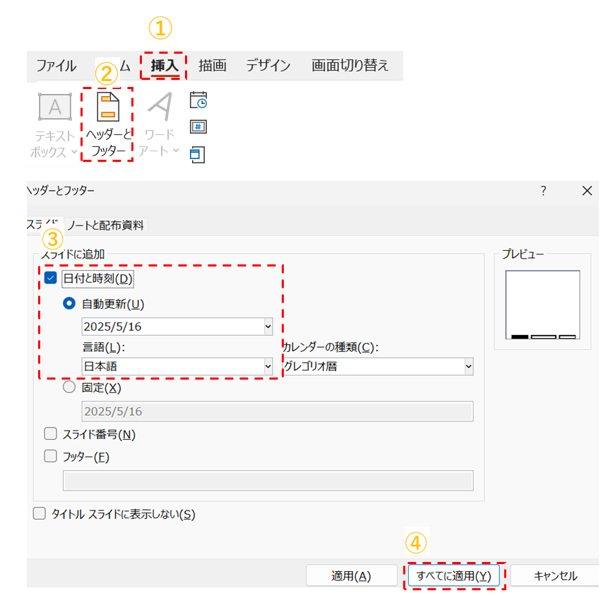 ④ 「すべてに適用」をクリックします
