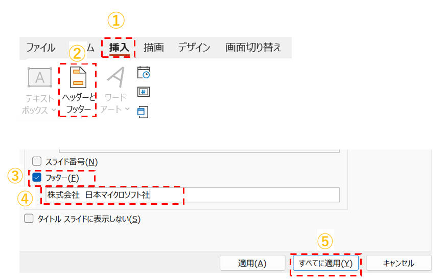 ⑤ 「すべてに適用」をクリックします