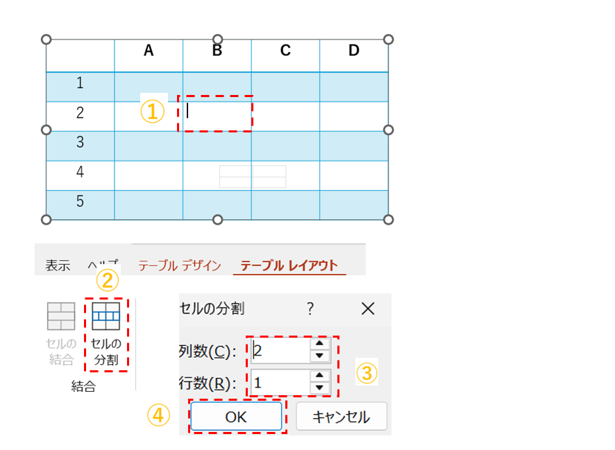 セルの分割とは。1つのセルを2つ以上に分割することです。