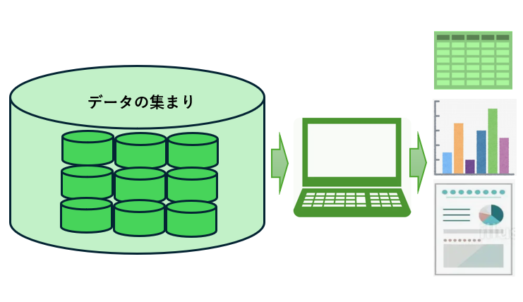 データベースとは、特定のテーマに沿ったデータを集めて管理し、容易に検索・抽出などの再利用をできるようにしたものです。