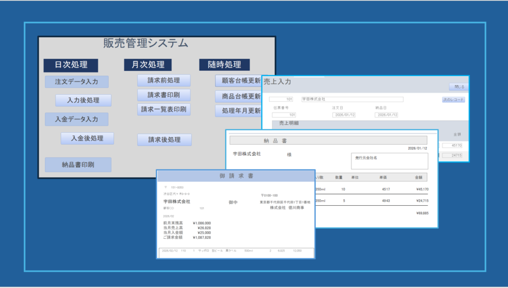 Microsoft ACCESSで開発した販売管理システムをご提供いたします。